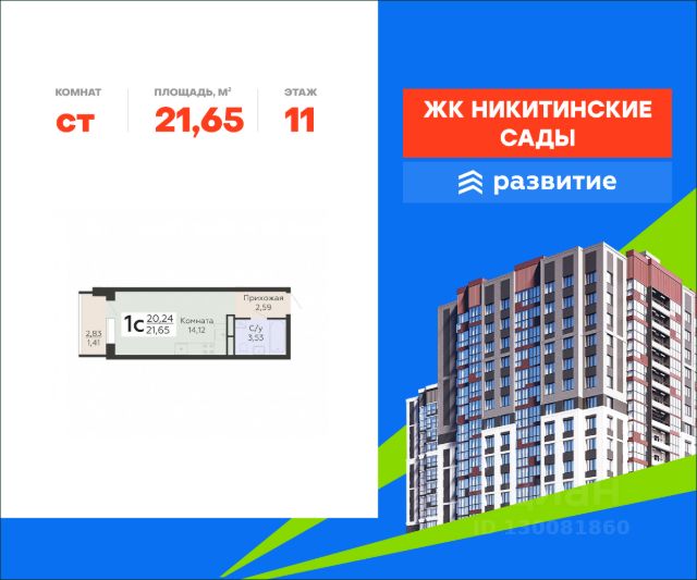 В продаже квартира площадью 21.65 кв. м с черновой отделкой. Квартира расположена на 2 этаже 20 этажного дома, в жилом комплексе комфорт-класса "Никитинские сады". "Никитинские сады" - это новое пространство, которое объединяет в себе современный внешний вид и атмосферу природного уюта. Жилой комплекс включает в себя 4 20-этажных корпуса, 1090 квартир различных планировок, множество общественных пространств для отдыха и собственную инфраструктуру. Наслаждайтесь всеми преимуществами города в окружении живописной природы! Расположение - 10 мин. пешком до остановки "улица Маршала Голикова"; - 5 мин. до бульвара Победы; - 9 мин. до ТРЦ "Арена"; - 20 мин. до ж/д станции "Березовая роща"; - 25 мин. до центра города; Благоустройство - несколько садов во дворе; - озеленение территории; - развивающие комплексы для малышей; - зоны для фотосессий; - скамьи по всему периметру; - прогулочные дорожки; - уличные тренажеры; - турники для воркаута; - мягкое покрытие на активных площадках; - оборудование из натуральных материалов; - освещение территории в вечерние часы; - просторный наземный паркинг; - кафе, магазины и бытовые сервисы на первых этажах. Окружение - природный отдых: Северный лес и лесопарк, пляж у реки Дон, озера Северск, Бычок, Круглое; - активный отдых: спорткомплекс "Арена Север", "Олимпик", футбольная школа и стадион, бассейн "Атлант", теннисный клуб "Спарта"; - культурный отдых: Музей почтового дела, КДЦ "Северный", храм Ксении Петербургской; - городской отдых: ТРЦ Сити-парк "Град" и "Московский проспект", ТРЦ "Арена", множество магазинов, кафе и студий красоты.