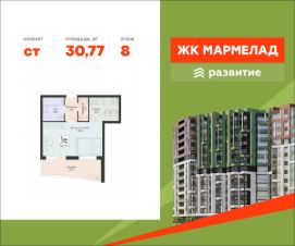 В продаже квартира площадью 30.77 кв. м с черновой отделкой. Квартира расположена на 9 этаже 13 этажного дома, в жилом комплексе комфорт-класса "Мармелад" (Федеральный застройщик - ГК "Развитие"). Мармелад - новый проект, который объединил в себе развитую инфраструктуру, жизнь в спокойном ритме и современные архитектурные решения. Проект сочетает в себе все самое главное - приватные пространства квартир, совместный семейный досуг, интерес к здоровому образу жизни, любовь к прогулкам в парках. Расположение Пешком: - 3 мин. до ТЦ "Айсберг"; - 3 мин. до остановки "Холодильник 4"; - 5 мин. до сквера "Старт"; - 7 мин. до остановки "ул. Баррикадная"; - 7 мин. до ресторанов поблизости; - 13 мин. до сквера "Бульвар Отличников" ; На автомобиле: - 6 мин. до Дома Юрия Клинских; - 12 мин. до гипермаркета "Лента" и "Лемана ПРО"; - 15 мин. до Левобережного автовокзала; - 17 мин. до центра города; - 20 мин. до достопримечательности Опора линий электропередач Маяк и парка "Алые Паруса"; - 20 мин. до ж/д станции "Придача" (вокзал "Воронеж-Южный"); Лобби - колясочная; - место для хранения велосипедов; - просторная входная группа с витражным остеклением; - увеличенная высота потолков в подъездах; - зоны ожидания с мебелью; Благоустройство - площадь с фонтаном; - пешеходная аллея; - приватный двор-патио; - ландшафтный дизайн; - высокие деревья, цветники, зеленые газоны; - умные детские площадки; - воркаут-зона с силовыми тренажерами; - места для отдыха родителей; - бульвар для прогулок; - велопарковки; - в каждом доме есть пассажирский и грузовой лифты; - круглосуточное видеонаблюдение; - ритейл-пространство с офисными и торговыми помещениями. Окружение - парковочные места - парки: "Алые Паруса", "Старт" и Волгоградский бульвар; - десятки учебных заведений: школы, лицеи, детские сады, колледжи и ВУЗы; - торговые центры "Айсберг" и "Озерки", поликлиника, множество магазинов и кафе; - военно-патриотический Музей-диорама, памятник "300 лет Российскому флоту", концертный зал, театр и Воронежский цирк. О застройщике ГК "Развитие" - федеральный застройщик, работающий в 8 регионах России: Ленинградская область, Москва и МО, Воронеж, Орёл, Самара, Липецк, Кисловодск, Крым. Компания развивает проекты от стандарт до бизнес-класса. За 14 лет работы компания зарекомендовала себя как надежный застройщик федерального масштаба и вошла в ТОП-20 по России и заняла лидирующие позиции в Воронежской области. Более 7000 семей уже получили качественное жилье от федерального застройщика ГК "Развитие".