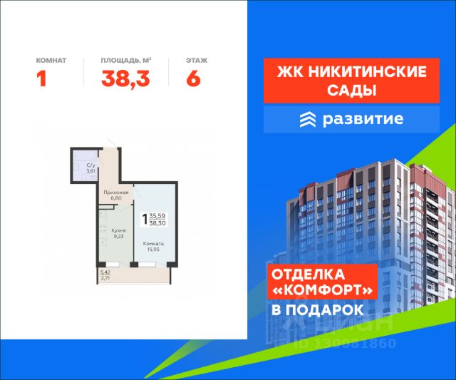 В продаже квартира площадью 38.30 кв. м с черновой отделкой. Квартира расположена на 6 этаже 20 этажного дома, в жилом комплексе комфорт-класса "Никитинские сады". "Никитинские сады" - это новое пространство, которое объединяет в себе современный внешний вид и атмосферу природного уюта. Жилой комплекс включает в себя 4 20-этажных корпуса, 1090 квартир различных планировок, множество общественных пространств для отдыха и собственную инфраструктуру. Наслаждайтесь всеми преимуществами города в окружении живописной природы! Расположение - 10 мин. пешком до остановки "улица Маршала Голикова"; - 5 мин. до бульвара Победы; - 9 мин. до ТРЦ "Арена"; - 20 мин. до ж/д станции "Березовая роща"; - 25 мин. до центра города; Благоустройство - несколько садов во дворе; - озеленение территории; - развивающие комплексы для малышей; - зоны для фотосессий; - скамьи по всему периметру; - прогулочные дорожки; - уличные тренажеры; - турники для воркаута; - мягкое покрытие на активных площадках; - оборудование из натуральных материалов; - освещение территории в вечерние часы; - просторный наземный паркинг; - кафе, магазины и бытовые сервисы на первых этажах. Окружение - природный отдых: Северный лес и лесопарк, пляж у реки Дон, озера Северск, Бычок, Круглое; - активный отдых: спорткомплекс "Арена Север", "Олимпик", футбольная школа и стадион, бассейн "Атлант", теннисный клуб "Спарта"; - культурный отдых: Музей почтового дела, КДЦ "Северный", храм Ксении Петербургской; - городской отдых: ТРЦ Сити-парк "Град" и "Московский проспект", ТРЦ "Арена", множество магазинов, кафе и студий красоты.