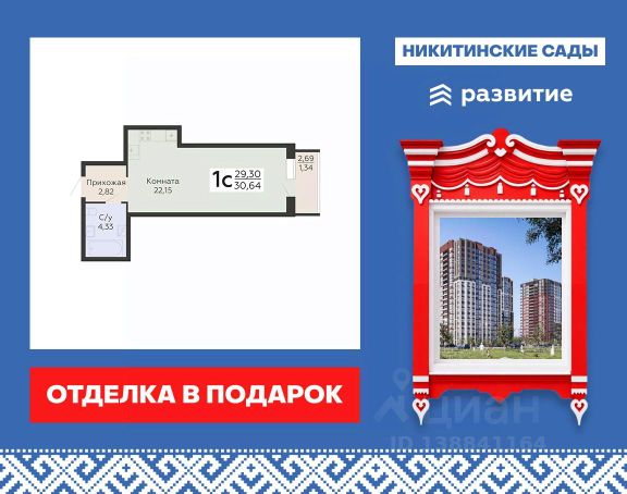 Жилой комплекс "Бунин" — проект с удивительной концепцией и необыкновенной архитектурой, невероятно комфортным и функциональным пространством для жизни. Авторы проекта — голландская архитектурная компания "KCAP Architects&Planners" в сотрудничестве с архитектурным бюро "А.Лен" (г. Санкт-Петербург). Жилой комплекс "Бунин" расположен на въезде в Воронеж со стороны Москвы, вдоль одной из главных городских магистралей - Московского проспекта. Оригинальная архитектурная композиция стилизована под стопки книг — вертикальные и горизонтальные. Книжные полки, обложки книг, страницы — все эти элементы узнаются в форме и отделке зданий. Технология строительства — монолитная. Входные группы подъездов, расположенные со стороны двора, выполнены в уровень земли, без ступеней и пандусов. В каждом подъезде оборудованы колясочные. Надежные и просторные лифты (в каждом подъезде по 2-3 лифта), в которые легко поместится велосипед и детская коляска. Входные двери парадных с витражным отделением, большие окна в местах общего пользования, а также датчики движения делают общее пространство светлым, безопасным и экономичным. Будут оборудованы места для службы консьержей. Пространство с благоустройством разделено на две зоны. Со стороны Московского проспекта будет организован сосновый сквер с прогулочными аллеями и общественными пространствами с зонами отдыха. С обратной стороны, рядом с яблоневым садом, будет находиться основное дворовое пространство, в которое вписаны детские и спортивные площадки, уличные тренажеры, workout и стилизованные зоны отдыха. Двор будет закрыт от машин. Кофейни, домашние рестораны, магазины, салоны красоты, расположенные на первых этажах коммерческих помещений, сделают жизнь удобной, практичной и чуточку камерной. Неподалеку от дома будет организован большой спортивный городок — с беговыми и велодорожками, площадками для игр в волейбол, стритбол, мини-футбол, настольный теннис и набирающую популярность в России игру в сквош. Двухуровневый подземный паркинг ЖК вмещает более 800 машин. В паркинге будут организованы круглосуточная охрана и видеонаблюдение. Оборудован лифт с жилых этажей, системой вентиляции и пожаротушения. Через дорогу от жилого комплекса, на территории площадью почти 35 гектаров, администрацией города создается полноценный социальный узел, который включает в себя общеобразовательную школу на 2860 мест и детский сад на 600. Рядом будут построены детская школа искусств с библиотекой имени Бунина, поликлиника на 1100 посещений в смену с подстанцией скорой медицинской помощи. А также в проекте предполагается 3 спортивных комплекса для занятий различными видами спорта. Например, такими как плавание, единоборства, настольный теннис, фигурное катание и другие игровые и индивидуальные виды спорта. Квартира-студия с хорошим ремонтом в Воронежской области.
