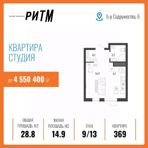 ЖК "РИТМ" — ДОСТУПНАЯ И ВЫГОДНАЯ ИНВЕСТИЦИЯ В ВАШЕ БУДУЩЕЕ Жилой комплекс "Ритм" по ул. Бульвар Содружества уч. 6 — часть масштабного проекта развития территории воронежского левобережья — микрорайона "Ключи", который займет 28,6 га недалеко от въезда в город по тамбовскому направлению. Здесь строится инновационный красивый мини-город. Он насыщен социальной и коммерческой инфраструктурой и обеспечен новейшими коммуникациями. Комплекс состоит не только из качественных домов. Решения по благоустройству стимулируют ведение активного здорового образа жизни. Продуманы возможности для взаимодействия людей, их творческой самореализации, выстраивания добрососедских связей и формирования современного приятного комьюнити. И все это на благоприятном экологическом фоне. Это действительно новый шаг в создании привлекательной среды для жизни в современном ритме! Жить, не ограничивая себя и свою семью, — разве не об этом вы мечтали? Вас ждет инновационное пространство, где вы будете вести свою насыщенную и интересную жизнь в выбранном вами ритме. Подземный паркинг на -1 этаже вместимостью на 114 машино-места, в том числе семейные парковки на два автомобиля освобождает двор от машин — там гораздо приятнее гулять с детьми или заниматься спортом. Жители смогут выходить к своему автомобилю в теплый паркинг прямо из лифта — нет беспокойства из-за погодных условий или за сохранность транспортного средства. Ваши гости тоже не останутся без парковки — на придомовой территории организовано - 131 место и вне придомовой территории - 213 мест. Для абсолютного комфорта на -1 этаже в каждой секции расположены кладовые помещение площадью от 2,10 до 5,0 кв.м., где можно хранить все что угодно — велосипеды, санки, лыжи и прочие вещи. Они больше не будут занимать весь балкон. Там гораздо приятнее пить кофе и любоваться видом из окна. ИНФРАСТРУКТУРА и ПРЕИМУЩЕСТВА Инновационное жилье в ЖК "Ритм" совсем рядом — 5 минут до Остужевского кольца, 20 минут до центра, рядом новая транспортная развязка. Легко добраться до работы и вузов, на концерт или в гости. Первый цифровой квартал в городе Дворы без машин Подземный паркинг и кладовые (в каждой секции) Сервисная Управляющая Компания (Smile) Новая инфраструктура района и коммуникаций Рядом с вами: новая уже действующая школа - 3 минут (просто перейти дорогу) новый детский сад (проект на стадии разработки, ориентировочный срок сдачи конец 2026 года) - 5 минут (просто перейти дорогу) 5 минут от центральной площади событий и прогулочных аллей стадион и спортивные площадки поликлиника (проект на стадии разработки) магазины аптеки детские площадки