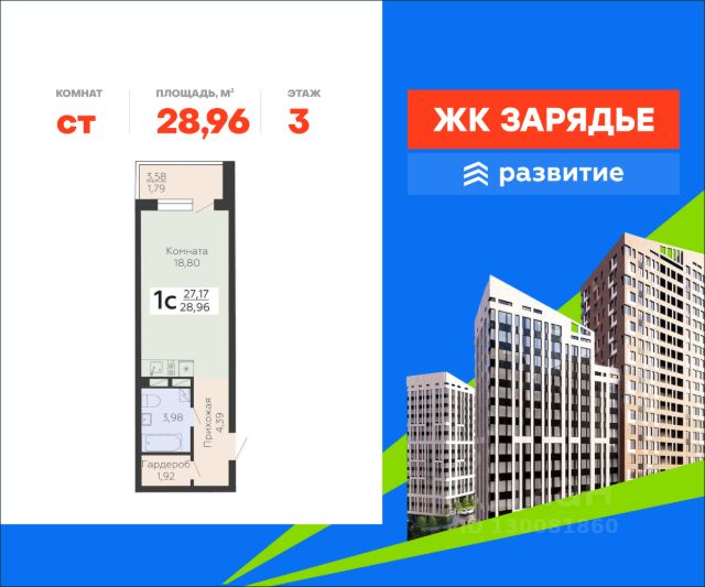 В продаже квартира площадью 23.16 кв. м с черновой отделкой. Квартира расположена на 5 этаже 18 этажного дома, в новом микрорайоне комфорт-класса "Зарядье" (Девелопер - федеральный застройщик ГК "Развитие"). Арт-квартал "Зарядье" - новый центр притяжения Коминтерновского района. Проект состоит из трех зданий переменной этажности, соединенных единым двором-парком, также он оснащен просторным подземным паркингом. Это уникальный квартал, в котором превосходная транспортная доступность, современная инфраструктура, сочетаются безупречные цветовые решения и эксклюзивные форматы квартир. Расположение Пешком: - 5 мин. до остановки "Политехнический институт"; - 7 мин. до Коминтерновского сквера; - 20 мин. до Центрального автовокзала. На автомобиле: - 5 мин. до Московского проспекта; - 10 мин. до центра города; - 15 мин. до Центрального парка; - 20 мин. до набережной у Воронежского водохранилища. Благоустройство - большой двор-парк; - функциональное зонирование территории; - сложный ландшафт, наполненный красками; - площадки для самых маленьких; - игровые комплексы для подростков; - футбольный корт; - протяженный прогулочный бульвар; - зоны отдыха среди деревьев; - беседки и скамейки по всему периметру; - workout-площадка; - дизайнерские лобби; - собственная служба консьержа; - 324 парковочных мест в подземном паркинге и на гостевой стоянке; - магазины, аптеки и кафе на первых этажах. Окружение - 4 уютных сквера: Коминтерновский, Солнечный, Политехнический, Электросигнальный; - спортивный центр BTR, Центральный стадион профсоюзов, фитнес-клуб "Олимп"; - ТРК "Арена", ТРЦ "Московский проспект", больницы, рестораны и учебные заведения Центрального района; - театр драмы имени Кольцова, Воронежский цирк, большой концертный зал, театр оперы и балета - все в пределах 15 минут.