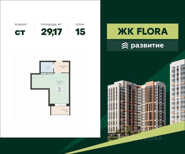 В продаже квартира площадью 14.88 кв. м с отделкой. Квартира расположена на 10 этаже 17 этажного дома, в жилом комплексе комфорт-класса FLORA ("Флора"). ЖК FLORA - лучшие условия для жизни в одном из самых привлекательных и зелёных районов города. Проект от федерального застройщика ГК "Развитие" состоит из семи секций переменной этажности и также включает в себя мультифункциональные площадки для всех видов отдыха, собственное ритейл-пространство, 270 парковочных мест для автомобилей, множество продуманных планировок. Жизнь в идеальном балансе между природой и современным городом - жизнь в ЖК FLORA! Расположение Пешком: - 8 мин. до остановки "Институт генетики"; - 10 мин. до Дендрария; - 12 мин. до школы "Содружество" на 2860 учеников. На автомобиле: - 5 мин. до Московского проспекта; - 8 мин. до ВГАУ им. Петра I; - 15 мин. до пляжа у реки Воронеж; - 20 мин. до центра города. Благоустройство - двор, разделенный на функциональные пространства; - игровые комплексы для детей; - безопасное покрытие, защищающее от травм; - зона-воркаут; - тренажеры для силовых и кардио-тренировок; - велодорожки; - протяженная прогулочная аллея; - скамьи и беседки для отдыха; - ландшафтное озеленение; - освещение двора в вечерние часы; - просторный холл с уютным интерьером; - колясочные и кладовые; - лапомойки для собак; - система охраны и видеонаблюдения; - супермаркеты, пункты выдачи, кафе и пекарни прямо в доме. Окружение - центральные ВУЗы, большая школа, десятки детских садов и учреждений доп. образования; - памятник природы "Старовозрастные Дубравы", лесопарк НИИЛГиС, Ботанический сад ВГУ, Северный лес, парк имени К. Д. Глинки; - ТЦ "Московский проспект", стадион "Динамо", гипермаркеты "Лента", "Магнит"; - пляж у Воронежского водохранилища, Археологический музей, кинотеатр Star&Mlad, культурно-досуговый центр "Северный". Купить квартиру-студию на улице Ломоносова в городе Воронеж.