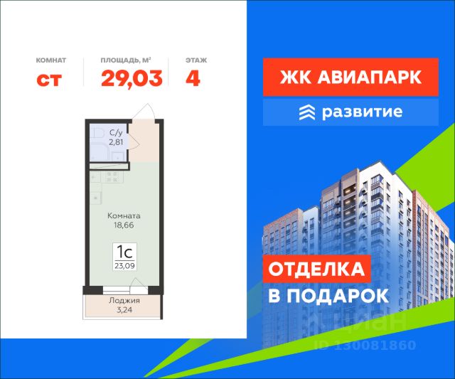 В продаже квартира площадью 29.03 кв. м с черновой отделкой. Квартира расположена на 4 этаже 18 этажного дома, в новом жилом квартале "Авиапарк". Идеальное сочетание природности и городского комфорта теперь по доступной цене! Новый жилой комплекс "Авиапарк" собрал в себе все преимущества современного жилья комфорт-класса, сочетая умиротворение загородной жизни с удобствами городской среды. Расположенный в уютном районе Воронежа с видом на местное водохранилище, комплекс имеет отличную транспортную доступность, современную архитектуру, все необходимые повседневные сервисы и большое благоустроенное пространство для жителей. "Авиапарк" - жизнь в ярком окружении! Расположение Пешком: - 10 мин. до остановки "МЧС"; - 15 мин. до Шиловского леса; - 20 мин. до поликлиники и школы. На автомобиле: - 2 мин. до трассы на Острогожской улице; - 15 мин. до Ленинского района; - 20 мин. до Петровской набережной; - 25 мин. до лесопарков "Вдохновение" и "Оптимистов". Благоустройство - уютные дворы, разделенные на зоны; - прогулочный бульвар в окружении зелени; - большое игровое пространство; - фото-зона; - городок для малышей; - спортивные конструкции для активного отдыха подростков; - беговые и велосипедные дорожки; - фитнес-зона с тренажерами; - паркинг на прилегающей территории; - несколько входных групп с авторским дизайном интерьера; - места для хранения колясок и велосипедов; - легкий доступ к инфраструктуре: магазины, кафе, салоны красоты на первых этажах домов. Окружение - леса и парки: Шиловский, Долгий и Малышевский леса, парк "Семейный"; - живописные водоемы: Шиловское озеро, река Дон, Воронежское водохранилище, Жировский затон; - 3 пляжа, зоопарк под открытым небом, торговые центры "Ласточкино", "Альянс"; - 4 спортивных учреждения, футбольный стадион, школы, детские сады, сетевые супермаркеты.