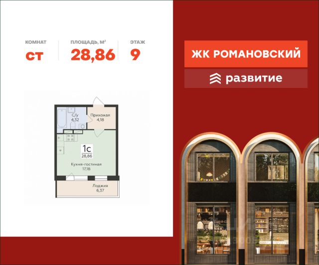 В продаже квартира площадью 27.12 кв. м с черновой отделкой. Квартира расположена на 9 этаже 14 этажного дома, в жилом комплексе "комфорт плюс" класса "Романовский". "Романовский" - это жилой комплекс нового поколения для комфортной жизни в городе. Особое внимание к деталям, амбициозная архитектурная концепция, планировки нового формата, высокое качество и привлекательная локация - вот из чего складывается ваша идеальная жизнь. "Романовский" - правильный выбор в пользу гармонии и комфорта. Расположение Пешком: - 3 мин. до остановки "Городской переулок"; - 5 мин. до остановки "Ул. Степана Панкова"; - 8 мин. до креативного кластера "Станция"; - 10 мин. до спортивного центра "Чайка". На автомобиле: - 8 мин. до Цирка; - 10 мин. до Адмиралтейской набережной; - 10 мин. до проспекта Революции; - 13 мин. до Центрального рынка. Благоустройство - просторный двор для всех видов досуга; - современная концепция "двор без машин"; - озеленение территории; - зонирование тихих и активных пространств; - игровая площадка с мягким покрытием; - воркаут-зона; - лужайки для йоги; - тенистые лаунж-зоны; - просторные входные группы; - большая площадь остекления; - в каждом подъезде работают лифты с доступом в паркинг; - помещения для хранения колясок; - комнаты-лапомойки для питомцев; - теплый подземный паркинг; - гостевая парковка на прилегающей территории; - круглосуточное видеонаблюдение во всех общественных пространствах; - ритейл на первых этажах. Окружение - пространство для спорта: стадион "Чайка", физкультурно-спортивный центр, бассейн, тренажерный зал; - пространство для природы: урочище "Чижовская дача", лесопарки "Оптимистов" и "Вдохновения", Воронежское "море"; - пространство для отдыха: цирк, театр оперы и балета, кинотеатры "Спартак", "Синема Парк"; ТЦ "Солнечный рай"; - пространство для повседневности: гипермаркет "Лента", Центральный рынок, множество детских садов, школ, ВУЗов и медучреждений.