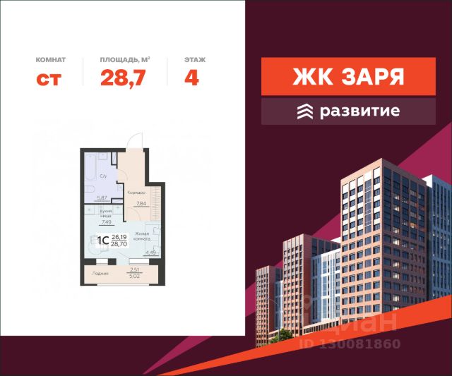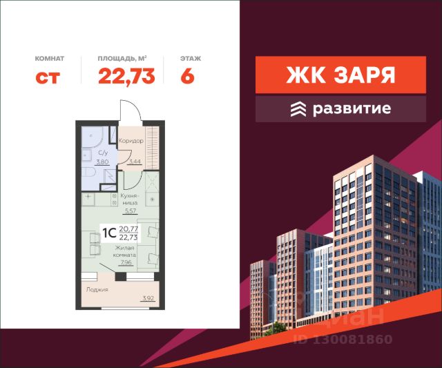 В продаже квартира площадью 19.30 кв. м с черновой отделкой. Квартира расположена на 6 этаже 14 этажного дома, в новом жилом комплексе "Заря" от федерального застройщика "Развитие". Жилой Комплекс "Заря" - это стильный, комфортный и современный проект с уникальной для Воронежа инфраструктурой. Между зданиями уютно расположится приватный благоустроенный двор-патио - мини оазис с пешеходными дорожками. Все это дополняет отличная транспортная доступность, неординарная архитектура, множество эксклюзивных форматов жилья, собственный подземный паркинг на 240 мест. "Заря" - новый стандарт комфортной городской жизни. Расположение Пешком: - 5 минут до ТЦ "Европа"; - 6 минут до остановки "Улица Брусилова"; - 7 минут до ул. Ильича; - 10 мин. до Ленинского проспекта. На машине: - 3 мин. до Чернавского моста; - 5 мин. до СК "Чернавская дамба" - 6 мин. до парка "Алые паруса"; - 7-10 минут до центра города и Петровской набережной. Благоустройство - стильное лобби с авторским дизайном; - теплая зона ожидания; - вместительные колясочные и велосипедные помещения; - лифты с доступом в паркинг; - кладовые на каждом этаже; - приватный двор-патио; - камерные лаунж-зоны в окружении зелени; - большое разнообразие растений: клены, ивы, можжевельник, китайская сирень и другие; - умное зонирование: тихие и шумные площадки удалены друг от друга; - беговые, прогулочные, велосипедные дорожки; - площадки для малышей и подростков; - спортивные корты и тренажеры; - общественный променад с ритейлом; - собственный деловой центр; - кафе, творческие студии, спортивные секции и магазины прямо на первом этаже дома. Окружение - места для прогулок: парк Патриотов, парк и пляж "Алые Паруса", сквер Ильича, бульвар "Ленинский проспект" у Воронежского водохранилища; - активный отдых: яхт-клуб, Центральный стадион, спорткомплекс Platinum Arena, фитнес-центр "Олимп" с бассейном; - все нужное рядом: ТЦ "Европа", школы и детские сады, поликлиника, центр педиатрии; - близость к центру: Центральный парк, Воронежский концертный зал, здание Управления ЮВЖД, Благовещенский собор.