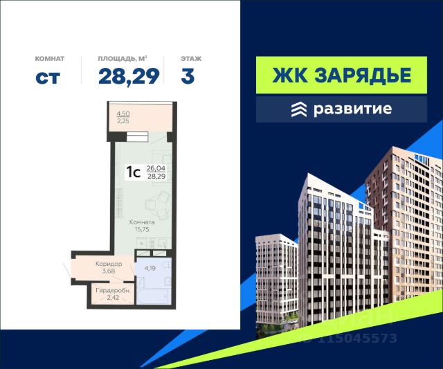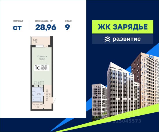 В продаже квартира площадью 32.31 кв. м с черновой отделкой. Квартира расположена на 9 этаже 13 этажного дома, в новом микрорайоне комфорт-класса "Зарядье" (Девелопер - федеральный застройщик ГК "Развитие"). Арт-квартал "Зарядье" - новый центр притяжения Коминтерновского района. Проект состоит из трех зданий переменной этажности, соединенных единым двором-парком, также он оснащен просторным подземным паркингом. Это уникальный квартал, в котором превосходная транспортная доступность, современная инфраструктура, сочетаются безупречные цветовые решения и эксклюзивные форматы квартир. Расположение Пешком: - 5 мин. до остановки "Политехнический институт"; - 7 мин. до Коминтерновского сквера; - 20 мин. до Центрального автовокзала. На автомобиле: - 5 мин. до Московского проспекта; - 10 мин. до центра города; - 15 мин. до Центрального парка; - 20 мин. до набережной у Воронежского водохранилища. Благоустройство - большой двор-парк; - функциональное зонирование территории; - сложный ландшафт, наполненный красками; - площадки для самых маленьких; - игровые комплексы для подростков; - футбольный корт; - протяженный прогулочный бульвар; - зоны отдыха среди деревьев; - беседки и скамейки по всему периметру; - workout-площадка; - дизайнерские лобби; - собственная служба консьержа; - 324 парковочных мест в подземном паркинге и на гостевой стоянке; - магазины, аптеки и кафе на первых этажах. Окружение - 4 уютных сквера: Коминтерновский, Солнечный, Политехнический, Электросигнальный; - спортивный центр BTR, Центральный стадион профсоюзов, фитнес-клуб "Олимп"; - ТРК "Арена", ТРЦ "Московский проспект", больницы, рестораны и учебные заведения Центрального района; - театр драмы имени Кольцова, Воронежский цирк, большой концертный зал, театр оперы и балета - все в пределах 15 минут.