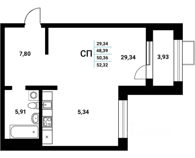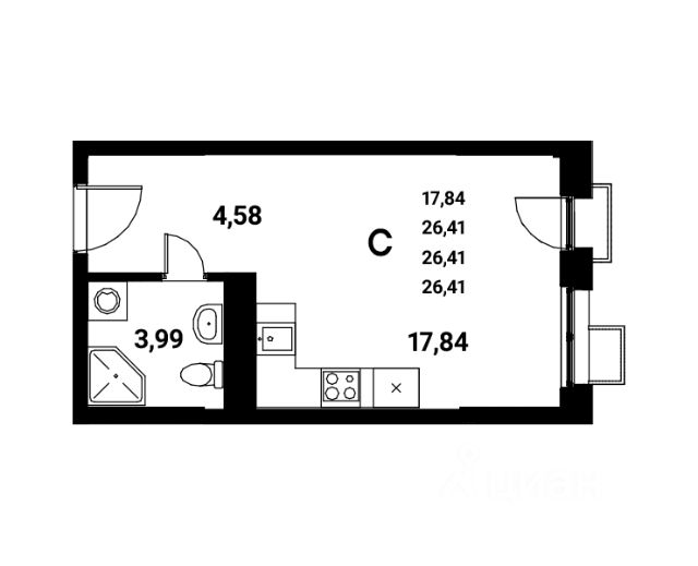 Студия: 26,41 кв.м., 7 этаж в комплексе Z-town, 1 очередь, корп.1, сдача: 2кв. , этажей: 21, адрес Воронеж г., Чуева наб., д. 7, Застройщик: Новый код.