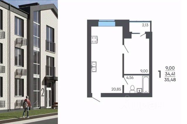 - Кухня-гостиная 42.1 кв. м.