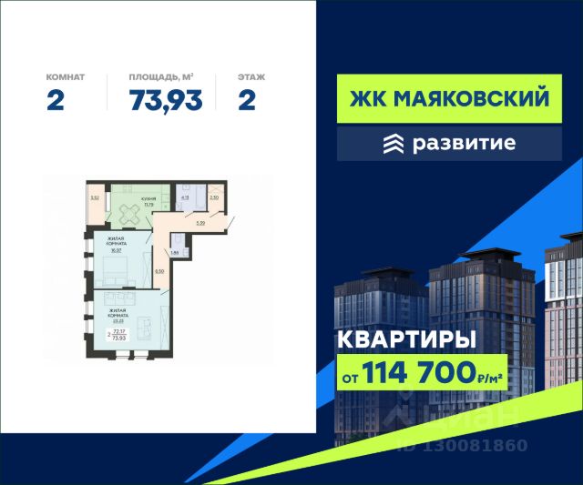 В продаже квартира площадью 45.63 кв. м с черновой отделкой. Квартира расположена на 2 этаже 21 этажного дома, в жилом комплексе "Маяковский" от федерального застройщика ГК "Развитие". "Маяковский" самый поэтичный жилой комплекс в Воронеже, расположенный на берегу водохранилища с прекрасным видом на центр города. Он подойдет и романтикам, для которых важнейшую роль играет эстетика городской среды и пейзаж за окном, и прагматикам, которым в первую очередь важны транспортная доступность, развитая инфраструктура и ликвидность квадратных метров для инвестиций. Расположение Пешком: - 4 мин. до пляжа у Воронежского "моря"; - 5 мин. до Спортивной набережной; - 10 мин. до остановки "Минская улица"; - 11 мин. до Ленинского проспекта. На автомобиле: - 5 мин. до Левобережного автовокзала; - 8 мин. до Чернавского моста; - 10 мин. до центра города; - 15 мин. до ж/д станции "Воронеж-1". Благоустройство - стильные входные группы; - навигация для удобства гостей; - колясочные и кладовые помещения; - собственный парк во дворе; - тихие места для отдыха в окружении зелени; - брусчатка для прогулок; - шумные площадки отдельно от тихих; - большой игровой городок для детей; - спортивные корты для футбола и баскетбола; - скамейки для отдыха по всему периметру; - уличные тренажеры; - просторная парковка на прилегающей территории; - удобный выход к набережной; - салоны красоты, кофейни и магазины на первых этажах. Окружение - 5 уютных мест для прогулок: парк "Дельфин", сквер "У озера", Спортивный сквер, сквер Медиков и Остужевский; - дворец спорта ДОСААФ, фитнес-клуб "Лайф", стадион, 2 бассейна, студии растяжки, единоборств и йоги; - ТЦ Depo, "Пассаж", множество супермаркетов и магазинов здорового питания; - 5 школ, 7 детских садов, Юридический техникум, ВУЗы различных специальностей, творческие академии. Продам квартиру на улице Гаршина в городе Воронеж.