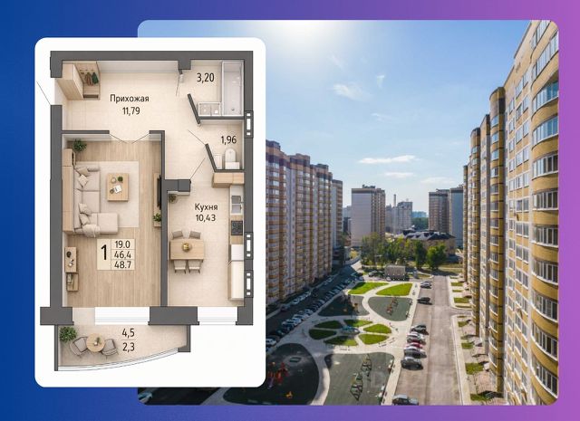 Продаётся 1-комнатная квартира в сданном доме (Лётчика Филипова, 4 (позиция 3)), срок сдачи: IV-кв. 2024, общей площадью 52.7 кв.м., на 15 этаже. Расположение, транспортная доступность Пятнадцать 16-этажных корпусов жилого комплекса "Спутник" занимают территорию около 16 га вблизи окружной дороги (улицы Антонова-Овсеенко, Ломоносова) и Московского проспекта (магистраль А-134 - подъездная автодорога к федеральной трассе М-4 "Дон"). Жилой квартал расположен в северной части города, рядом с лесным массивом Воронежской нагорной дубравы. Комплекс граничит с коттеджным поселком "Лесная поляна", гаражным кооперативом и фруктовым садом. На расстоянии около 4 км находится пляж на берегу Воронежского водохранилища. По Московскому проспекту можно за десять минут доехать до международного аэропорта, за двадцать минут - до железнодорожного вокзала или административного центра города. В шаговой доступности находятся остановки общественного транспорта - 35 маршрутов в центр Воронежа, до вокзала, автостанции, аэропорта, в близлежащие районы и пригороды. Инфраструктура Внутри жилого комплекса построен детский сад на 280 мест, спортивные площадки для занятий гимнастикой и игр в волейбол, баскетбол и мини-футбол. Планируется открытие общеобразовательной школы на 1224 ученика. По соседству работают супермаркет "Магнит", школа с бассейном и гимназия. Вблизи ЖК "Спутник" расположены спорткомплекс "Олимпик", теннисный клуб "Адмирал" (с катком, бассейном и теннисными кортами), областная клиническая больница 1. Недалеко находятся торговый центр "Московский проспект" (с гипермаркетом "Лента"), сити-парк "Град", рынок "Воронежский". Практически в любой район города можно доехать на автобусе или маршрутном такси, которые останавливаются в десяти минутах пешком от комплекса. Надежность застройщика Проект комплексной застройки "Спутник" у Московского проспекта реализует ООО предприятие "ИП К.И.Т.", основанное в 1991 году. Компания начинала с производства сетки "Рабица", и за два десятилетия превратилась в крупную строительную организацию. Возведение первого жилого дома было начато в 1992 году. Предприятие владеет заводом по производству газосиликатных блоков, имеет собственную архитектурную мастерскую, производственную базу и крановое хозяйство. На заводе "Техоснастка" выпускаются лифты. Для обслуживания построенных домов создана собственная управляющая компания. Архитектура Общая площадь участка, выделенного под микрорайон ЖК "Спутник", превышает 21 га. Конструктивная схема здания - рамно-связевая. Особенность типовой серии 1.120.1-1с/89 - прочный каркас здания: колонны стянуты между собой стальными тросами, которые укладывают в ригели и заливают бетоном. Наружные стены имеют толщину 61 см, выложены газосиликатными блоками и облицованы полнотелым кирпичом. Высота потолков в квартирах - 2,7 м. Квартиры предложены с черновой отделкой или с ремонтом под ключ: с обоями, линолеумом, входной металлической и межкомнатными дверями, электрической плитой и сантехникой. Разв