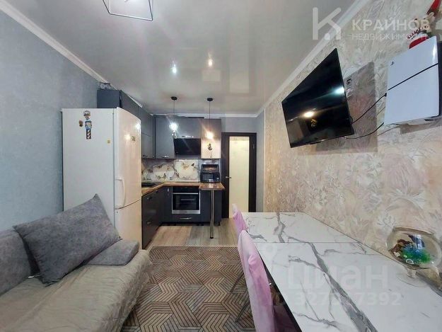 Просторная кухня с зоной приготовления и приема пищи и с зоной отдыха с диваном-кроватью и телевизором. Большой утепленный балкон . На балконе есть розетка, свет, сушилки для одежды, подоконник столешница.