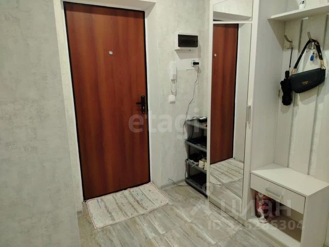 Просторная прихожая , есть встроенный шкаф купе с зеркалами( много полок), вешалка для одежды и обувница.