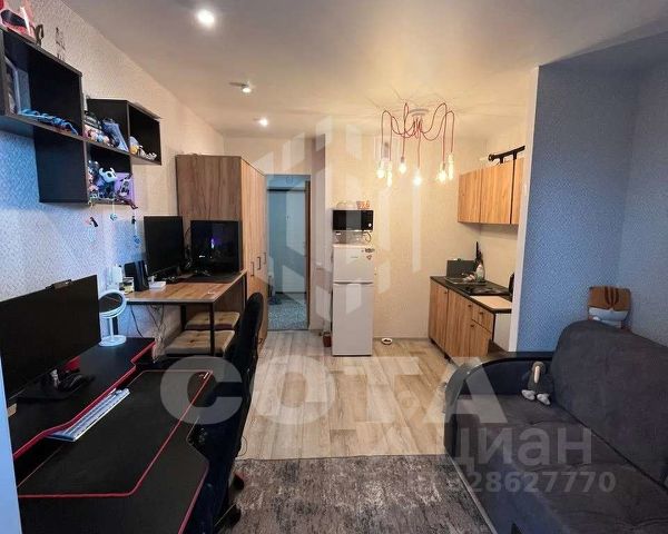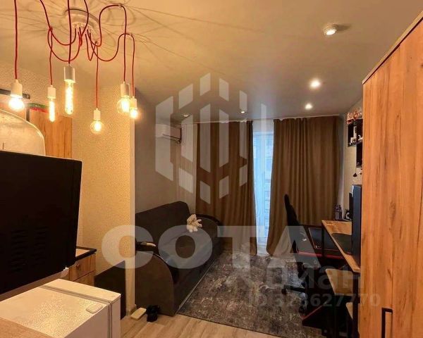 Жилая комната с большим видовым окном, широкий удобный подоконник столешница. Встроенный шкаф купе, с множеством полок.