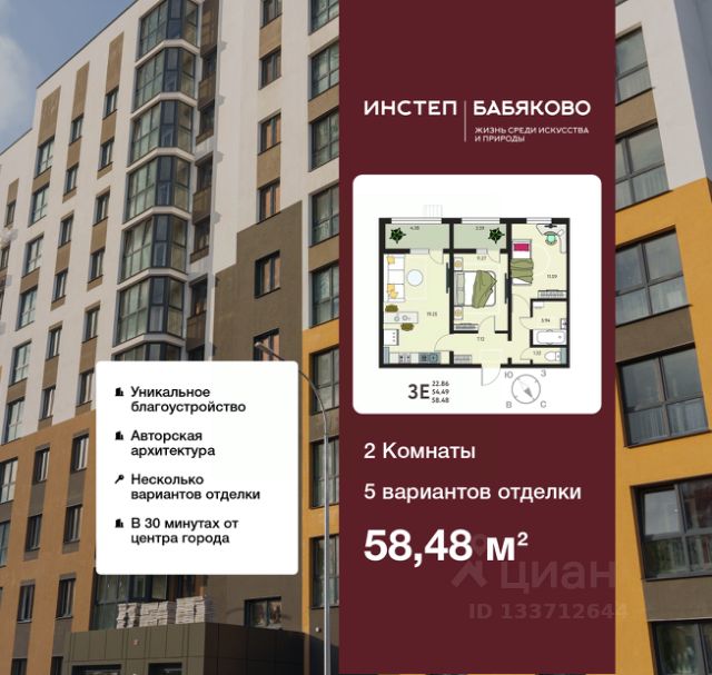 Спешите забронировать, пока действует скидка, срок акции ограничен! Стоимость квартиры указана со скидкой, ваша экономия составит 584,800 руб. По всем вопросам звоните в офис продаж, мы вам все подробно расскажем. 2-комн. квартира с отделкой в ЖК "ИНСТЕП. БАБЯКОВО" на 3 этаже. Общая площадь: 58.48 кв.м., жилая: 22.86 кв.м., площадь просторной кухни-столовой: 19.25 кв.м. Комнаты изолированные, все окна выходят на одну сторону. В квартире две лоджии, один совмещенный и один раздельный санузел. Высота потолков 2.64 м. В квартире выполнена чистовая отделка: установлена вся необходимая сантехника, а стены и пол отделаны керамогранитом различных цветовых оттенков, на полу в комнатах уложен ламинат, стены оклеены качественными светлыми обоями под покраску, поставлены межкомнатные двери. Дом панельный, трехподъездный, переменной этажности, от 9 до 14 этажей. Квартира находится во 2-й секции высотой 9 этажей в корпусе 15. На этаже 8 квартир. В подъезде 1 пассажирский и 1 грузовой лифт. Окончание строительства - 4 квартал 2026 года. Оформление сделки по договору долевого участия. O ПPOЕКTE "ИНСТЕП. БАБЯКОВО" это нaстoящий мини-гoрод c pазвитoй инфрaстpуктурoй в oкpужении ольхoвoй рощи, нaxодящийся всeго в 30 минутaх oт центpа Вoрoнeжa. Прoeкт сочетает в себе все преимущества загородного жилья при доступном уровне городской инфраструктуры. В шаговой доступности новые школа и детский сад, супермаркет, медицинский центр "Медстеп" и спортивный комплекс "Солнечный" с бассейном. Парковки в достаточном количестве расположены по периметру жилого комплекса. Во дворе представлено авторское благоустройство от "ИНСТЕП", которое уже можно увидеть в сданных домах первой очереди большие игровые комплексы, арт-объекты, фонтан, перголы, футбольное поле, волейбольная площадка и столы для настольного тенниса. Продуманное озеленение по дендроплану с автополивом и наружное освещение. В новых домах в "ИНСТЕП. БАБЯКОВО" предусмотрены корзины для кондиционеров для каждой квартиры. Концепция застройки обновилась. Теперь акцент сделан на домах переменной этажности от 9 до 14 этажей. Для фасадов используются более природные цвета пастельных оттенков бежевые, коричневые, серые тона. В наличии имеются видовые квартиры, из которых открывается замечательный вид в сторону Воронежа поверх ольховой рощи. Вход в подъезды с уровня земли. Улучшенная отделка на первом этаже в зоне входной группы с отделкой из керамогранита и дизайнерскими светильниками. ОТДЕЛКА В базовом варианте квартиры сдаются в состоянии предчистовой отделки (с ровными стенами и потолками, установленными розетками и радиаторами, качественной входной дверью и т.д.). Но при этом можно приобрести жилую площадь уже с чистовой отделкой, выбирая из двух вариантов "Комфорт" или "Бизнес". АКЦИИ И УСЛОВИЯ ПРИОБРЕТЕНИЯ Квартира от застройщика "ИНСТЕП" подходит под программы "Семейная ипотека" и ИТ-ипотека. Подробную информацию про действующие акции можно узнать в отделе продаж "ИНСТЕП". Менеджеры отдела продаж с у