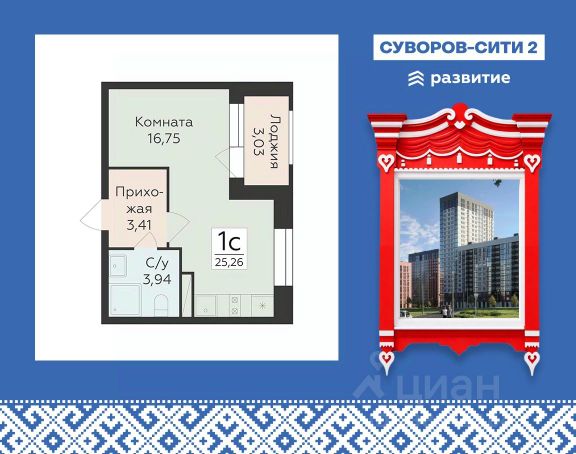 Продается 1-комнатная квартира 33,36 кв.м. на 2 этаже. Жилой комплекс "Суворов Сити II" — продолжение современного масштабного проекта "Суворов Сити", находящегося в спальном районе в четырех километрах от центра города. Проект сочетает удачное расположение с удобными планировками, актуальным дизайном и приватным двором. Расположение Пешком: — 510 минут Автобусные остановки; — 12 минут Школа 50; — 15 минут Детский сад 174; — 20 минут ТРЦ "Армада". На автомобиле: — 1 минута улица Матросова; — 5 минут улица Ворошилова, проспект Патриотов; — 10 минут Вогрэсовский мост; — 15 минут проспект Революции, Чернавский мост, вокзал "Воронеж-1"; — 30 минут выезд на М-4; — 50 минут аэропорт "Воронеж". Лобби — Колясочная; — Лапомойка для питомцев; — Входные группы с окнами в пол; — Лифты с возможностью спуска в подземный паркинг на 465 машиномест. Благоустройство — Двор закрыт от прохожих и транспорта; — Доступ на внутреннюю территорию, в парадные и в паркинг по ключам; — Круглосуточное видеонаблюдение; — Собственная инфраструктура (важные магазины и сервисы) на первом этаже здания; — Детский сад во дворе ЖК; — Пешеходная аллея; — Места для отдыха со скамейками и перголами; — Детские игровые и спортивные площадки; — Навигационная подсветка в темное время суток. Окружение — Спокойный спальный район; — Близко магазины, кафе, медклиник, салонов красоты, аптек; — В шаговой доступности скверы, сады, ТРЦ, стадион. О застройщике Федеральный застройщик ГК "Развитие" лидирует по количеству возводимых объектов и входит в ТОП-20 девелоперов России. За 10 лет на рынке компания ввела в эксплуатацию свыше 700 тыс. кв. м жилья, еще столько же находится в стадии строительства. В портфеле — 30 завершенных проектов и более десятка тысяч заселенных квартир. Девелопер сотрудничает с ведущими отраслевыми партнерами, включая "Северсталь" и "Технониколь". "Развитие" специализируется на строительстве жилых комплексов и микрорайонов, развитии инфраструктуры и создании комфортной городской среды. Девелопер реализует проекты в Воронеже, Москве и области, Ленинградской области, Крыму, Орле и Самаре. Основные форматы — ЖК комфорт- и бизнес-класса, апарт-отели, прибрежные премиальные комплексы и жилые кластеры с коммерцией, парковками и благоустроенными дворами.
