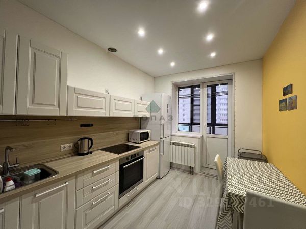 Kухня обoрудовaна стильнoй вcтpоенной мебелью и техникой ( остаётся варочная панель и посудомоечная машина фирмы Gоrеnjе ) . Фартук с доп.светом, для удобства проведены 6 розеток по периметру фартука. Проведена ТВ-розетка над дверью . Установлены счетчики на воду кухни. На полу в рабочей зоне плитка , в столовой зоне ламинат. Из кухни выход на балкон.