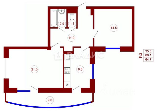 • ✓ В базе Циан 2 квартир.