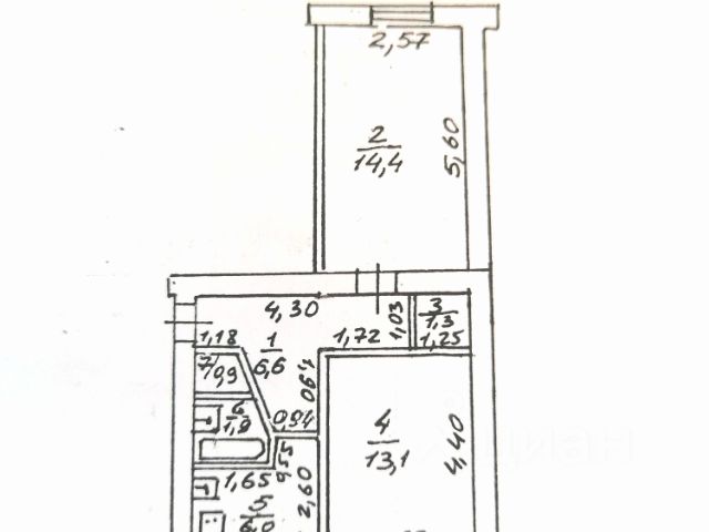 Общая площадь (83,5 кв.м.). Кухня (6,5 кв.м.). Гостиная (17,15 кв.м.). Спальни (14,8+14,3+10,75+9 кв.м.) Санузел раздельный (1+2,5 кв.м.). Коридор (7,5 кв.м.). Лоджия (4,6 кв.м.). Высота потолков - 2,65 м.
