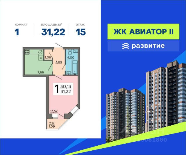 В продаже квартира площадью 24.40 кв. м с отделкой. Квартира расположена на 16 этаже 20 этажного дома, в жилом комплексе комфорт-класса "Авиатор 2". "Авиатор 2" - это три дома переменной этажности с удобной инфраструктурой поблизости, хорошей транспортной доступностью и просторными паркингами, на которых хватит места всем жителям. Самый красивый жилой комплекс в микрорайоне Машмет совмещает в себе комфорт, практичность и рациональные планировки. Расположение Пешком: - 2 мин. до остановки "Ростовская улица"; - 7 мин. до торгового центра; - 8 мин. до медцентра и больницы; - 10 мин. до ж/д станции "Машмет"; На автомобиле: - 10 мин. до Ленинского проспекта; - 15 мин. до вокзала "Воронеж-Южный"; - 20 мин. до Чернавского моста; - 25 мин. до Цирка в центре города. Благоустройство - стильная входная группа; - природные оттенки, придающие уют интерьеру холлов; - удобные зоны для хранения колясок; - кладовые помещения; - система видеонаблюдения; - безопасный внутренний двор; - прогулочный бульвар и велодорожки; - взрослые деревья и цветущие кустарники; - активные площадки для подростков; - песочницы, горки и карусели для малышей; - воркаут-тренажеры на свежем воздухе; - скамьи для отдыха по всему периметру; - площадки для пикников; - зона выгула собак; - освещение двора в вечерние часы; - большая открытая парковка для автовладельцев; - магазины, аптеки, кондитерские и кофейни на первых этажах. Окружение - 4 парковых зоны: Ростовский парк, Новосибирский бульвар, парк имени Шерстюка, Каменный лабиринт с видом на Воронежское водохранилище; - 3 детских сада, 4 школы, супермаркет, различные сервисы доставок; - ТЦ "Проспект", "Южный Полюс", "Маяк", спорткомплекс "Рудгормаш"; - 5 медицинских центров, включая областные больницы и частные узконаправленные клиники.