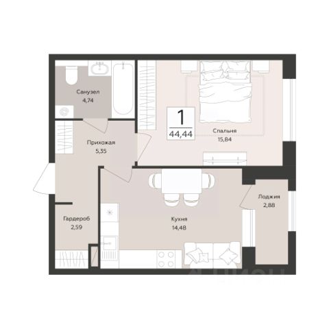Продаётся 1-комнатная квартира в строящемся доме (Эклипс), срок сдачи: III-кв. 2030, общей площадью 44.44 кв.м., на 3 этаже. Новый жилой комплекс от группы компаний "Развитие" расположен по адресу: г. Воронеж, набережная Массалитинова.