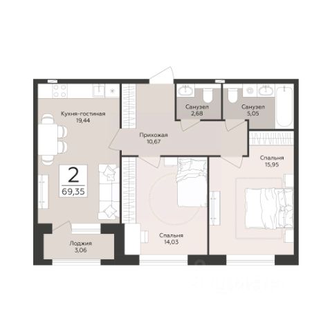 Продаётся 2-комнатная квартира в строящемся доме (Эклипс), срок сдачи: III-кв. 2030, общей площадью 69.35 кв.м., на 2 этаже. Новый жилой комплекс от группы компаний "Развитие" расположен по адресу: г. Воронеж, набережная Массалитинова.
