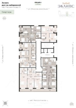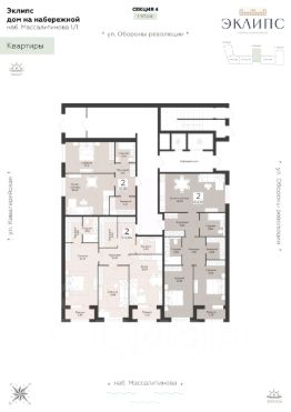 Продаётся 2-комнатная квартира в строящемся доме (Эклипс), срок сдачи: III-кв. 2030, общей площадью 65.13 кв.м., на 4 этаже. Новый жилой комплекс от группы компаний "Развитие" расположен по адресу: г. Воронеж, набережная Массалитинова.