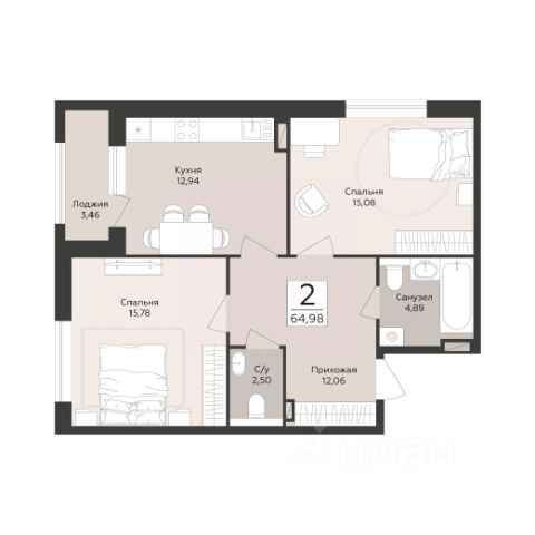 Продаётся 2-комнатная квартира в строящемся доме (Эклипс), срок сдачи: III-кв. 2030, общей площадью 64.98 кв.м., на 5 этаже. Новый жилой комплекс от группы компаний "Развитие" расположен по адресу: г. Воронеж, набережная Массалитинова.