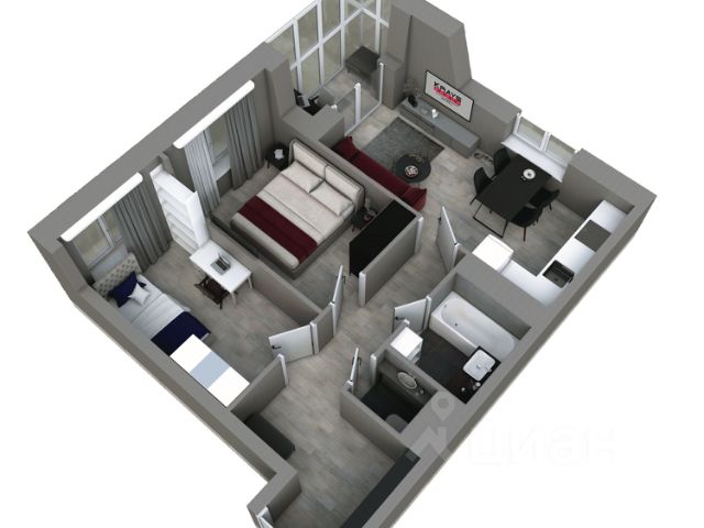 Квартира: 1 к 48,28 кв.м., 3 этаж в комплексе Галилей, 1 очередь, корп.1, сдача: 3кв. , этажей: 25, адрес Воронеж г., Кривошеина ул., д. 13/14, Застройщик: ГК Крайс.