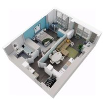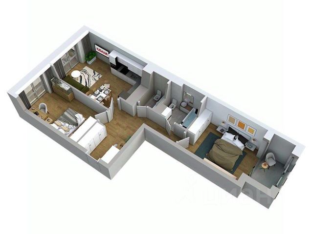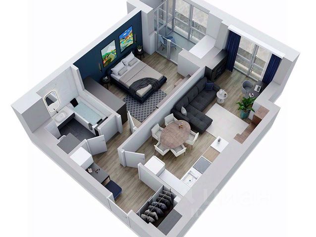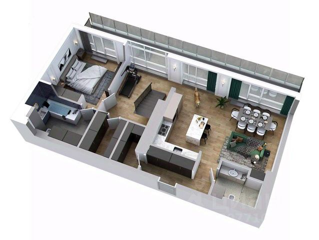 Светлая и просторная квартира с панорамными окнами на три стороны. Остекление выполнено в том числе в зоне прихожей и коридора, что создаёт дополнительное естественное освещение. Все помещения наполнены светом и просторны, при этом имеют рациональную площадь и форму, благодаря проработанному дизайн-проекту.