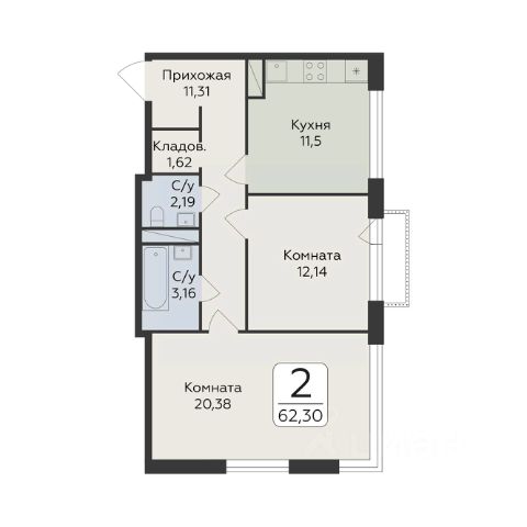 Продаётся 2-комнатная квартира в строящемся доме (Дом 1), срок сдачи: IV-кв. 2027, общей площадью 62.3 кв.м., на 4 этаже. Новый жилой комплекс от группы компаний "Развитие" расположен по адресу: г. Воронеж, по ул. пр-кт Труда.