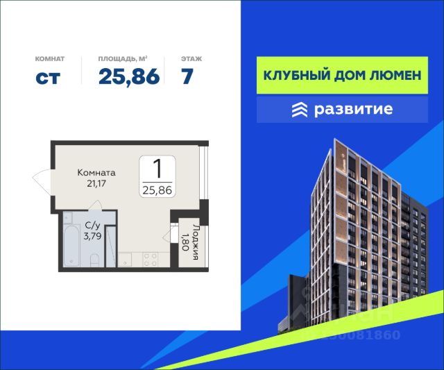 Продается однокомнатная квартира 7 в новостройке Клубный дом "Люмен" по адресу Воронежская область, Воронеж, пр-т Труда, д. 117. Общая площадь квартиры - 41.42 кв. м., этаж 2 из 17, секция 1. Тип проекта, по которому построен дом - монолит, компания-застройщик - ООО "ГК "Развитие". Стоимость квартиры - 5736670 Р. Срок сдачи - 4 квартал 2027. Более подробная информация по телефону.