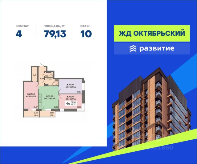 В продаже квартира площадью 79.13 кв. м с черновой отделкой. Квартира расположена на 4 этаже в 19-этажном жилом комплексе "Октябрьский". Жилой дом "Октябрьский" - современный проект от ГК "Развитие", объединяющий в себе все преимущества комфортного жилья вблизи центра города. Прекрасная транспортная доступность, престижное окружение, современная архитектура с акцентом на функциональность - все это сочетается с камерностью и уютом. Добирайтесь в любую часть города без труда, при этом наслаждаясь тишиной за окном вашей квартиры. Расположение Пешком: - 7 мин. до остановки "Улица Космонавтов"; - 10 мин. до остановки на ул. Ворошилова; - 15 мин. до площади Ленина; - 25 мин. до автостанции "Юго-Западная". На автомобиле: - 7 мин. до Воронежского Цирка; - 8 мин. до проспекта Патриотов; - 10 мин. до Петровской набережной; - 15 мин. до вокзала "Воронеж-Южный". Благоустройство - стильная входная группа с большими окнами; - уютные зоны ожидания; - современные лифты; - большой и безопасный двор; - озеленение и освещение территории; - площадки для малышей; - игровые зоны для подростков; - спортивный корт для командных игр; - воркаут-тренажеры; - протяженный бульвар для прогулок и бега; - велодорожки и велопарковки; - большой паркинг для автовладельцев; - зона ритейла в шаговой доступности. Окружение - 4 парка: сквер Авиаторов, сад им. 50-летия Октября, Депутатский сквер, парк имени Дурова; - 14 школ, 19 детских садов, главные ВУЗы города, учреждения дополнительного образования; - городской физкультурный центр, спорткомплекс "Чайка", бассейн и стадион "Факел"; - культурные и досуговые места в центре города: Воронежский Цирк, Чижовский плацдарм, большой концертный зал, музей "Гото Предестинация".
