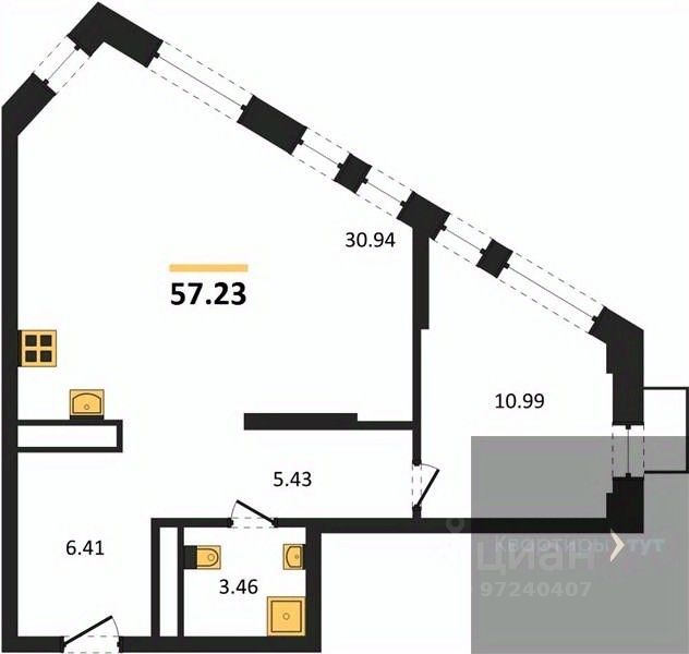 • ✓ Самая большая площадь: 107,1 м²