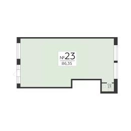 Помещение состоит из небольшого тамбура (4.6 кв.м), разделяющего вход с улицы и основное пространство, большой комнаты (17.1 кв.м) и подсо...