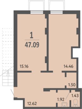 Помещение свободного назначения на -1 этаже, общая площадь 47.09 кв.м., без отделки. Стоимость помещения 4,991,540 руб., цена за кв.м 105,999 руб.