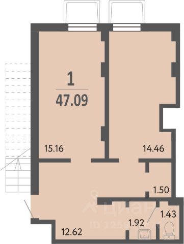 Помещение свободного назначения на -1 этаже, общая площадь 47.09 кв.м., без отделки. Стоимость помещения 5,085,720 руб., цена за кв.м 107,999 руб.