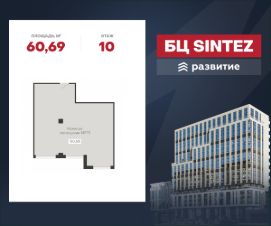 В продаже помещение коммерческого назначения площадью 60.69 кв. м . Офис находится на 10 этаже 14-этажного бизнес-центра SINTEZ, расположенного в Левобережном районе города Воронеж, на ул. Новосибирской, 13Б.