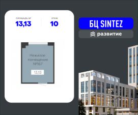 В продаже помещение коммерческого назначения площадью 13.13 кв. м . Офис находится на 10 этаже 14-этажного бизнес-центра SINTEZ, расположенного в Левобережном районе города Воронеж, на ул. Новосибирской, 13Б.