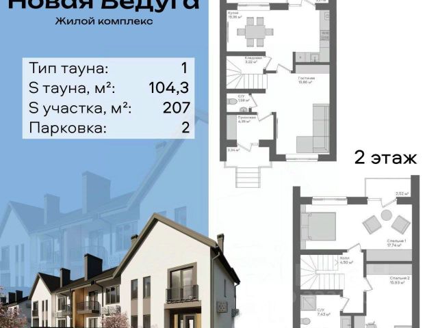Таунхаус 98 кв.м с земельным участком 207 кв.м в ЖК "Новая Ведуга" уют и комфорт рядом с городом. Особенности ЖК "Новая Ведуга": закрытая охраняемая территория; пруд с пляжем, прогулочные зоны, пикник-парк; магазины, аптека, кафе в шаговой доступности; детский сад на территории, школа в 8 минутах; парковочные места, спортплощадки, чистая экология. Удобное расположение всего 9 км от Воронежа, 30 минут до центра. Купить таунхаус от застройщика выгодно и надёжно. БЕСПЛАТНОЕ ОДОБРЕНИЕ ИПОТЕКИ И СОПРОВОЖДЕНИЕ СДЕЛКИ! ДИЗАЙН-ПРОЕКТ В ПОДАРОК! • Семейная ипотека от 4.6% на весь срок! • Семейная ипотека для семей с двумя детьми до 18 лет! • Рассрочка с первоначальным взносом 20% до окончания строительства ( 3 кв 2026) • Первоначальный от 10% • Трейд-ин "Меняй старое на новое" Таунхаус в Семилукском районе Воронежской области.