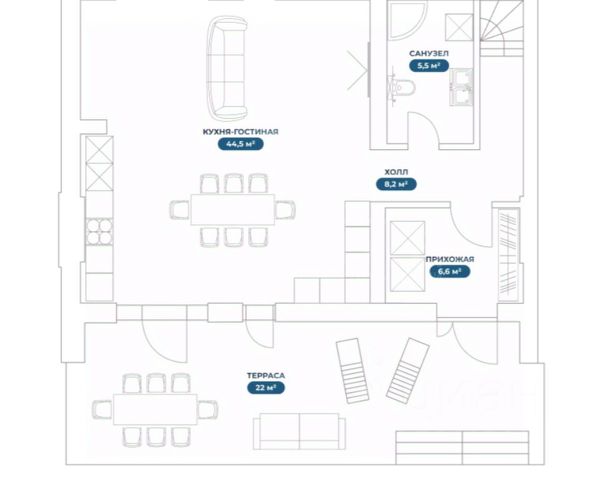 - Кухня-столовая 18,5 кв.м