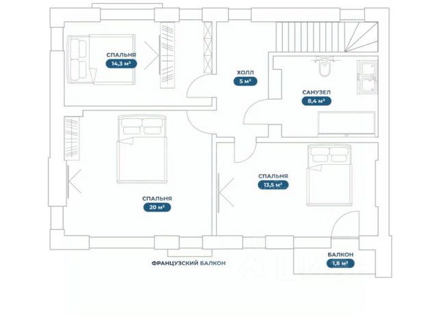 - Спальня 1 20,4кв.м ;