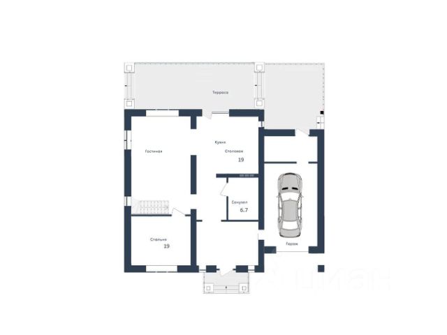 С лицевой стороны дома высажена сирень . Крытое крыльцо есть как с внутренней , так и с внешней стороны дома .