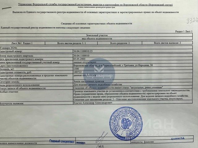 Продажа земельного участка под ИЖС в перспективном районе! (с. Чигорак) Идеальное предложение для тех, кто хочет построить дом своей мечты или выгодно вложить деньги! Локация: Воронежская область, Борисоглебский городской округ, с. Чигорак, ул. Ленинская. Динамично развивающийся район с растущей инфраструктурой. Отличная транспортная доступность. Все коммуникации: Газ, Свет рядом! Подъезд асфальт почти до самого участка. Рядом магазин и автобусная остановка. Участок уголовой - можно сделать въезд с двух сторон. Пляж в трех километрах от участка. Характеристики участка: Площадь: 839 м² (почти 9 соток) — оптимальный размер для дома и сада. Рельеф: Ровный, сухой участок — не потребуется затрат на выравнивание! Категория земель: Земли населенных пунктов. ВРИ: Для индивидуального жилищного строительства (ИЖС) — прописка и строительство гарантированы. Это отличное предложение ниже рыночной стоимости аналогов! Земля — актив, который ежегодно растет в цене. Покупка сейчас — это выгодная инвестиция в будущее. Юридическая чистота (100% гарантия): Собственность оформлена. Межевание проведено (границы установлены). Обременений, арестов и залогов НЕТ (согласно выписке ЕГРН). Документы полностью готовы к сделке — быстрое оформление перехода права. Возможен обмен! Рассмотрим вариант обмена на автомобиль (ваше предложение будет рассмотрено индивидуально). Возможна рассрочка без процентов. Звоните прямо сейчас! Количество выгодных предложений ограничено. Успейте забрать свой кусочек земли по лучшей цене! Код пользователя: 147977 Номер в базе: 12256246 Продаю участок ижс.