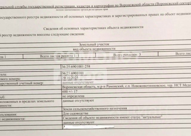 • ✓ В базе Циан 2 земельных участков СНТ в селе Новоживотинное Рамонского района.