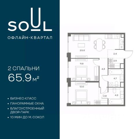 2-комн.кв. · 65,9 м² · 18/24 этаж