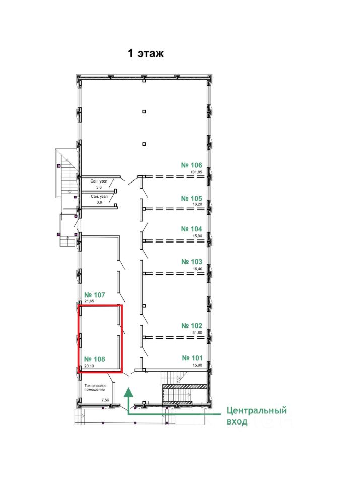 Площадь помещения: 20,1 кв.м. Есть варианты помещений от 16 до 350 кв.м.