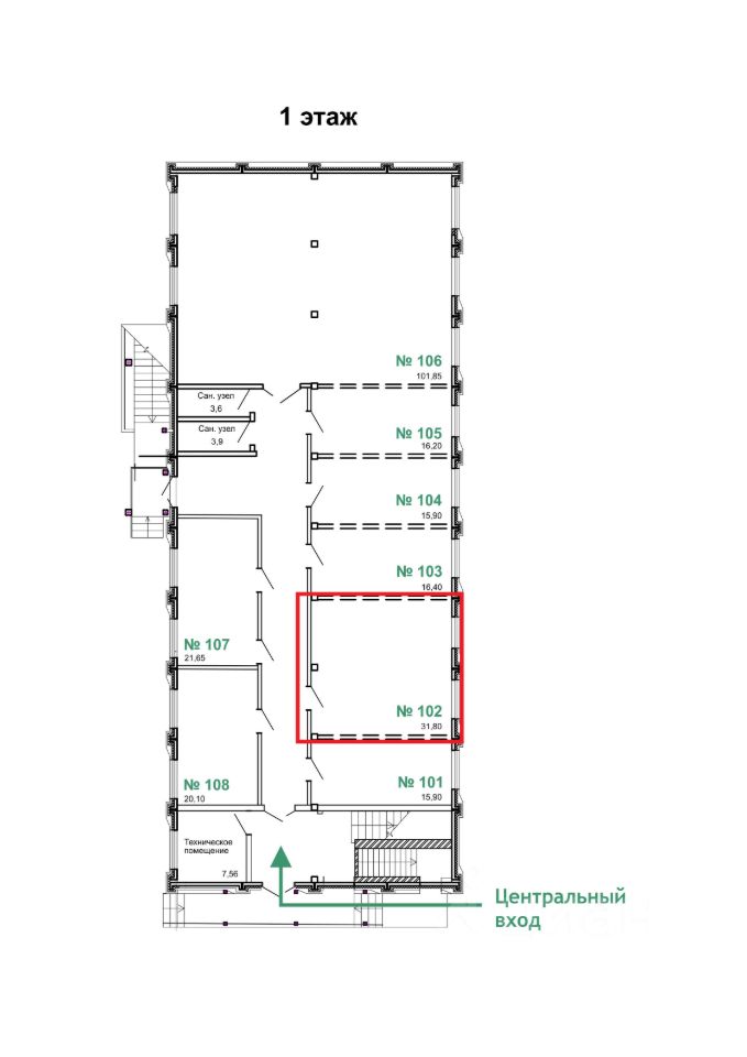 Площадь помещения: 31,8 кв.м. Есть варианты помещений от 15 до 350 кв.м.