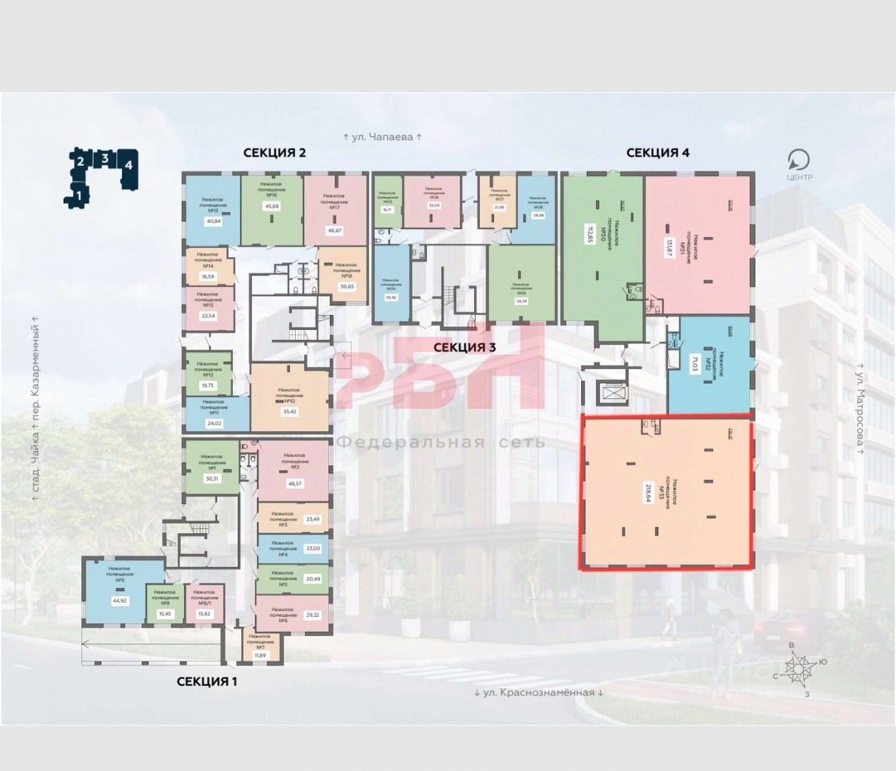 Сдается помещение свободного назначения 218,6 м² в ЖК Дом Офицеров