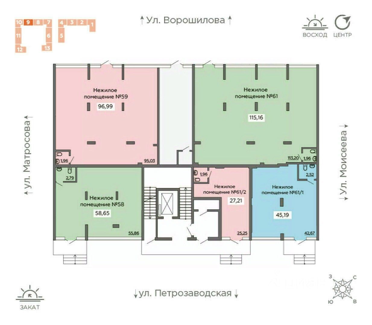 Коммерческое помещение свободного назначения в Жилом Комплексе "Суворов Сити" в Ленинском районе города Воронежа на улице 121 Стрелковой Дивизии.